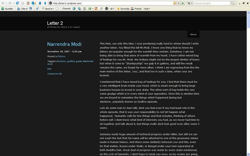 A relatively new endeavor. Its a different approach on commenting upon various happenings in the world around us. Here you will read letters addressed to various people...and if you want one for yourself...its never late to ask.